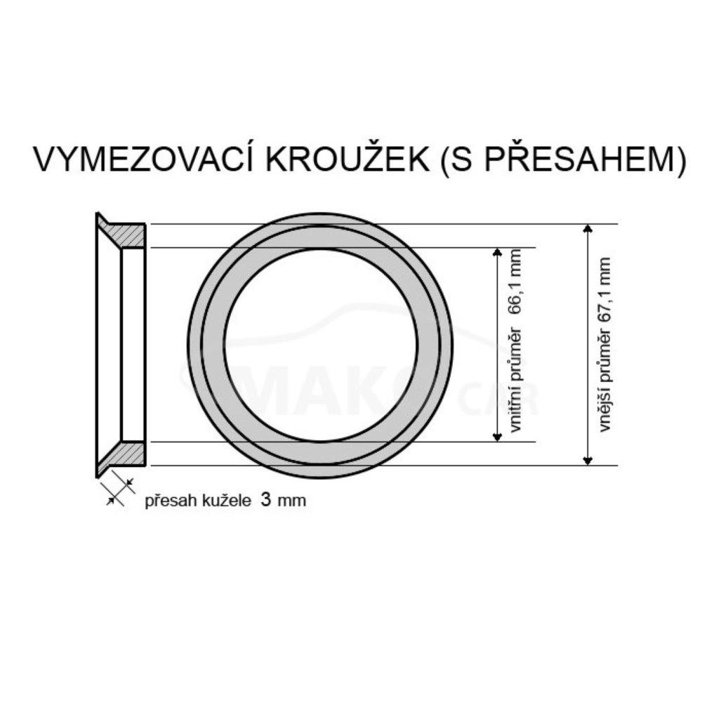 Centrovací kroužek 67,1 / 66,1 plast, černý, přesah kužele 3mm