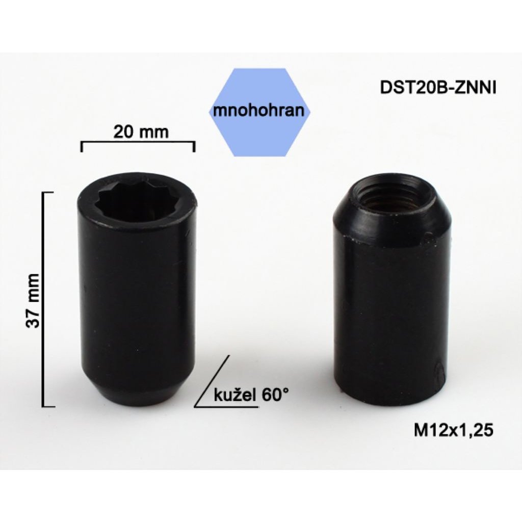 Výška 37 mm, vnější průměr 20 mm, dosedací plocha kužel 60°.