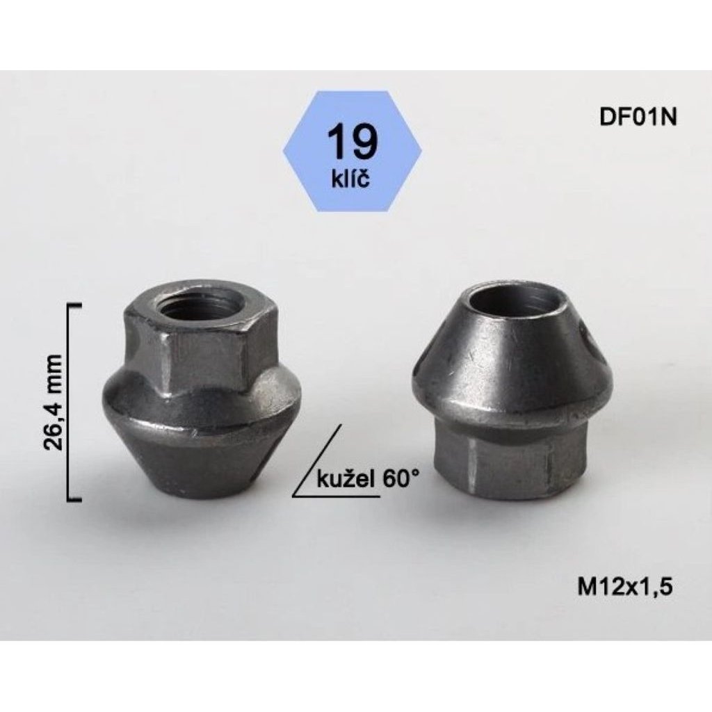 Kolová matice M12x1,5 Ford, kužel, pevná, otevřená, klíč 19