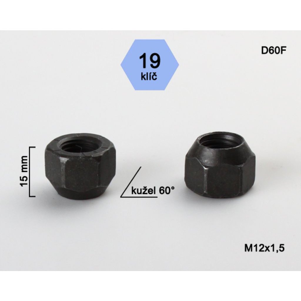 Kolová matice M12x1,5 kužel otevřená, černá, klíč 19