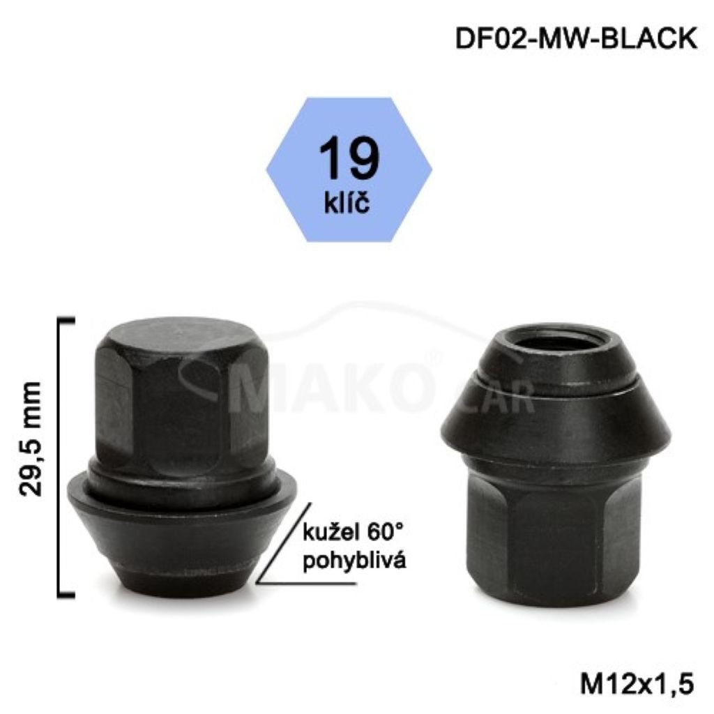 Kolová matice M12x1,5 kužel pohyblivá, Ford, klíč 19 (DF02-MW) výška 29,5mm, barva černá