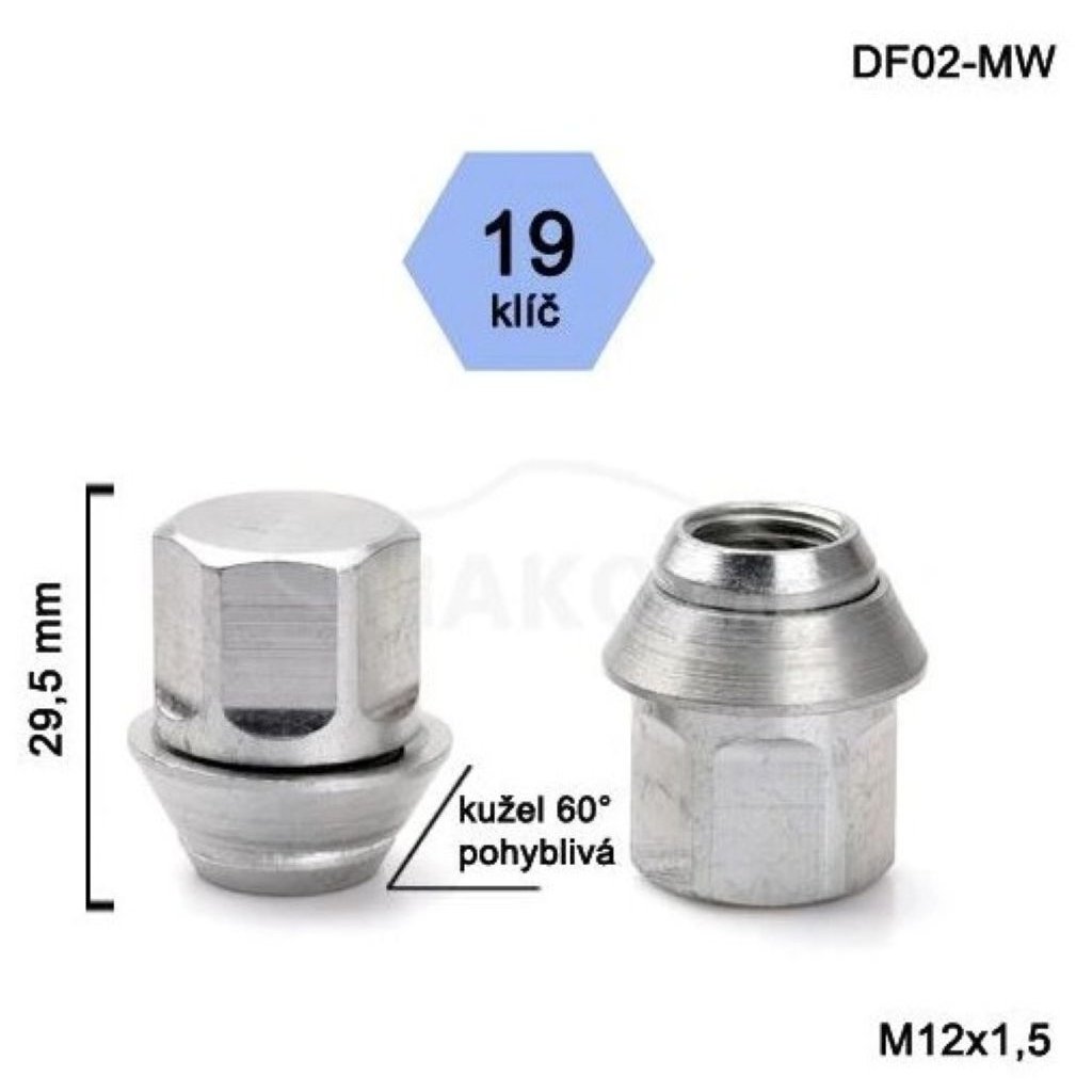 Kolová matice M12x1,5 kužel pohyblivá, Ford, klíč 19 (DF02-MW) výška 29,5mm