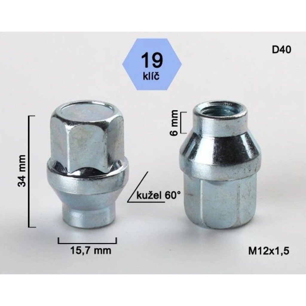 Kolová matice M12x1,5 kužel s krčkem 15,7 zavřená, klíč 19