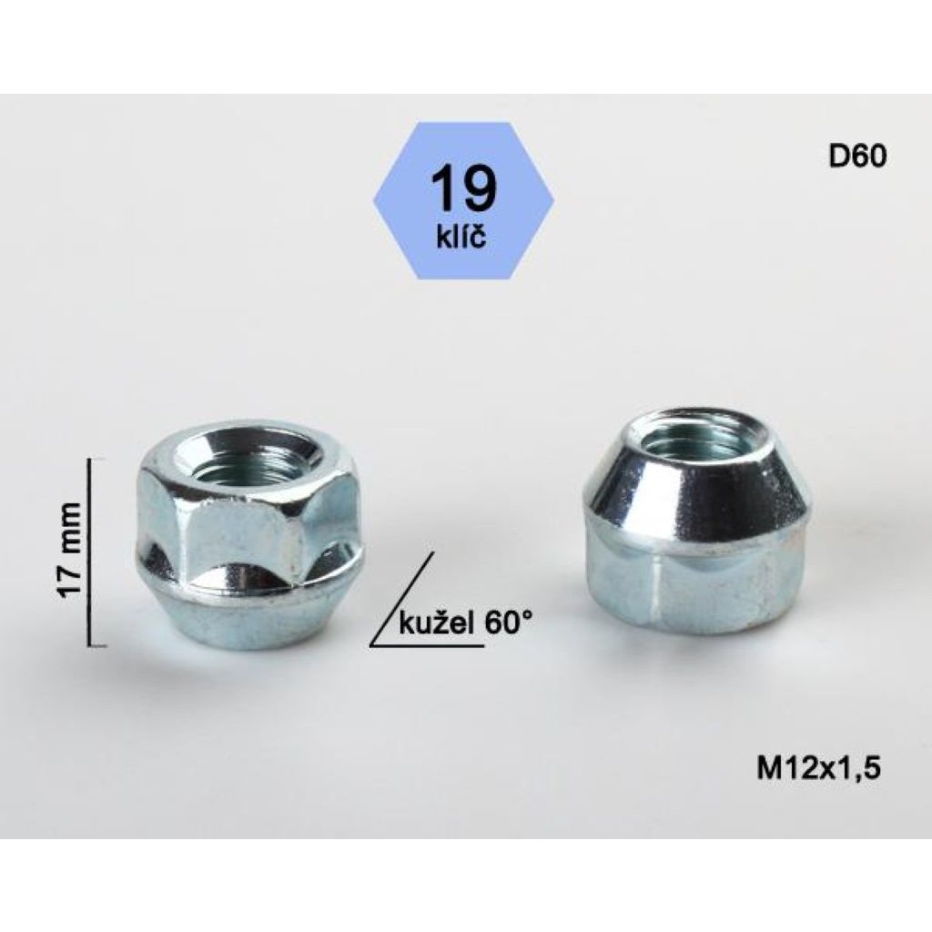 Kolová matice M12x1,5 s krátkou hlavou, kužel otevřená, klíč 19