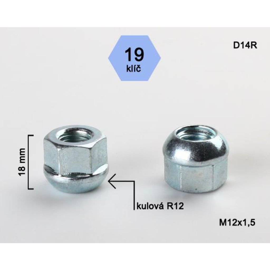 Kolová matice M14x1,5 koule R12 (nerez víčko), klíč 19