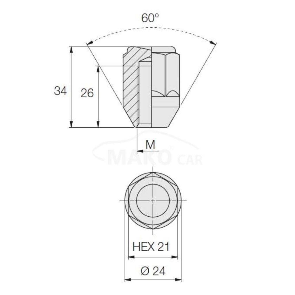 Kolová matice M14x1,5 kužel zavřená, klíč 21