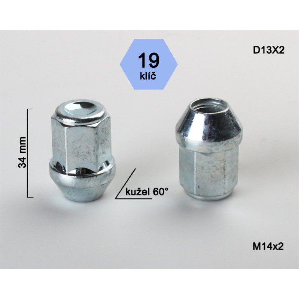 Kolová matice M14x2mm kužel zavřená, klíč 19