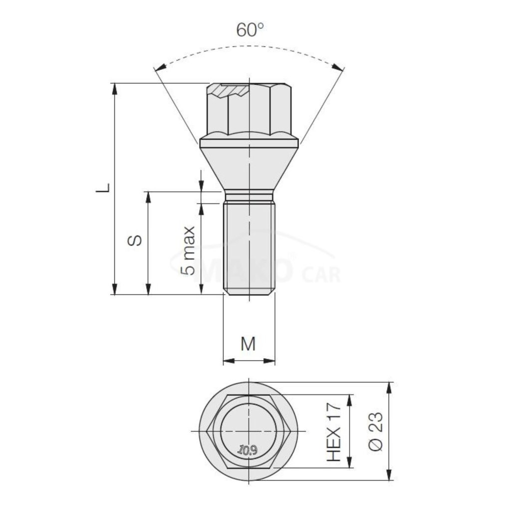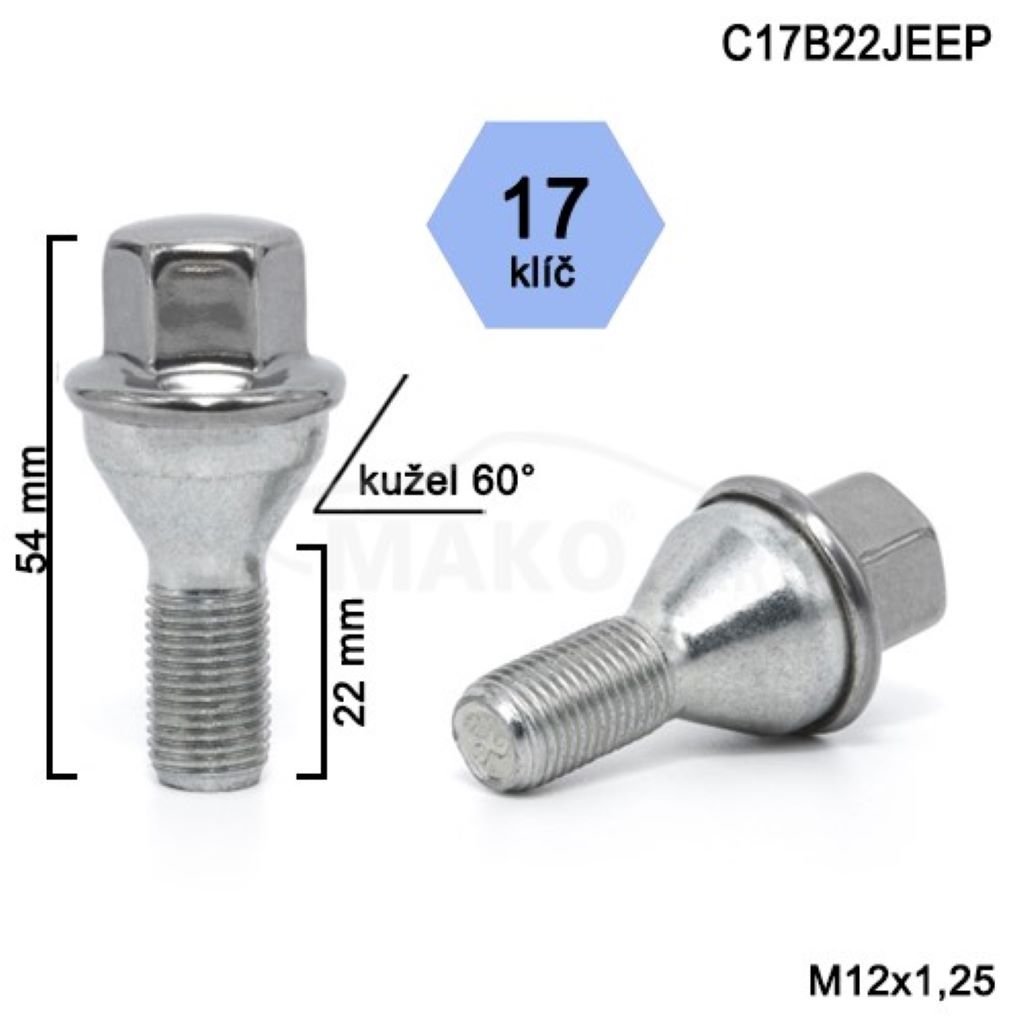 Kolový šroub M12x1,25x22 kužel, klíč 17, nerez krytka, stříbrný, BIMECC