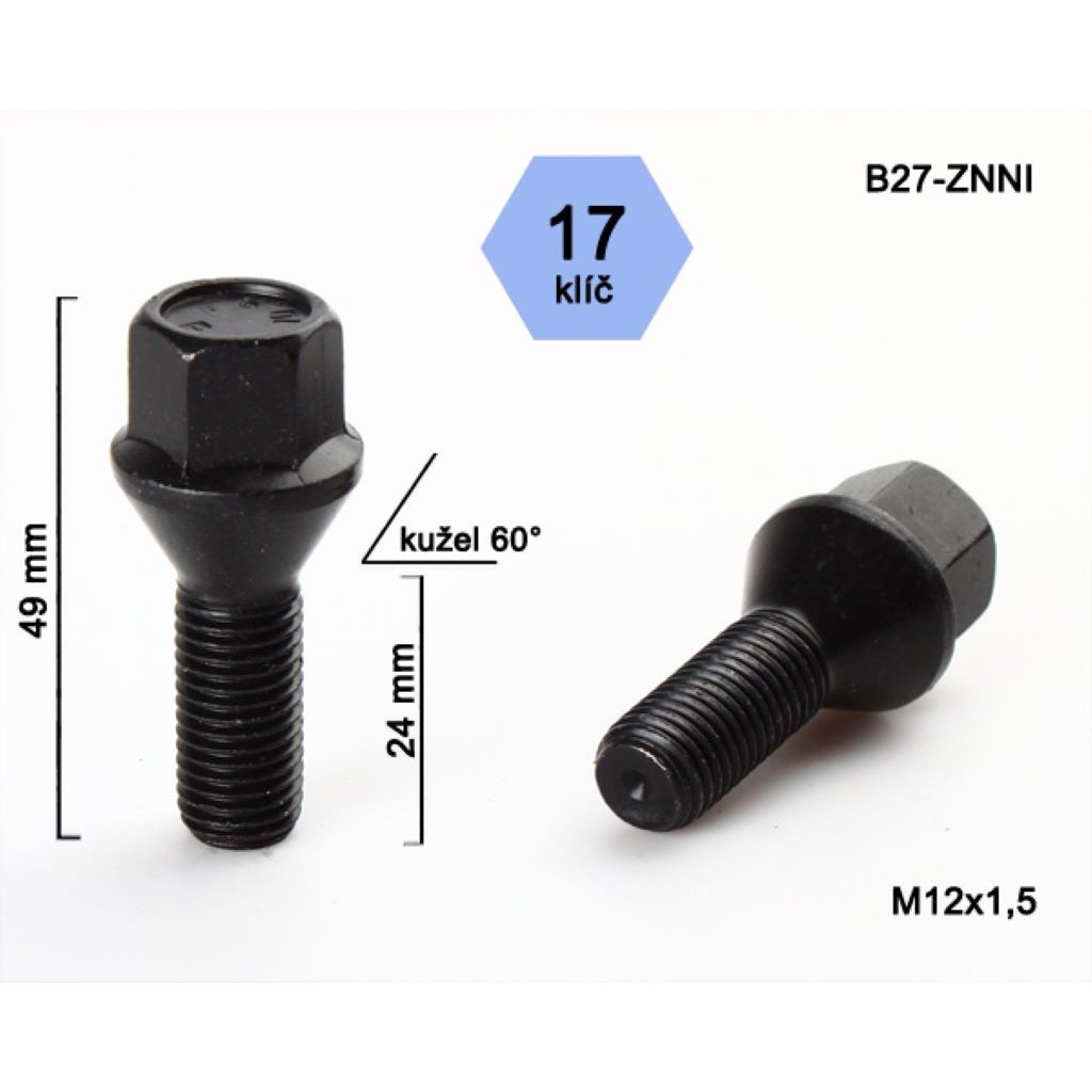 Kolový šroub M12x1,5x24, černé, kužel, klíč 17