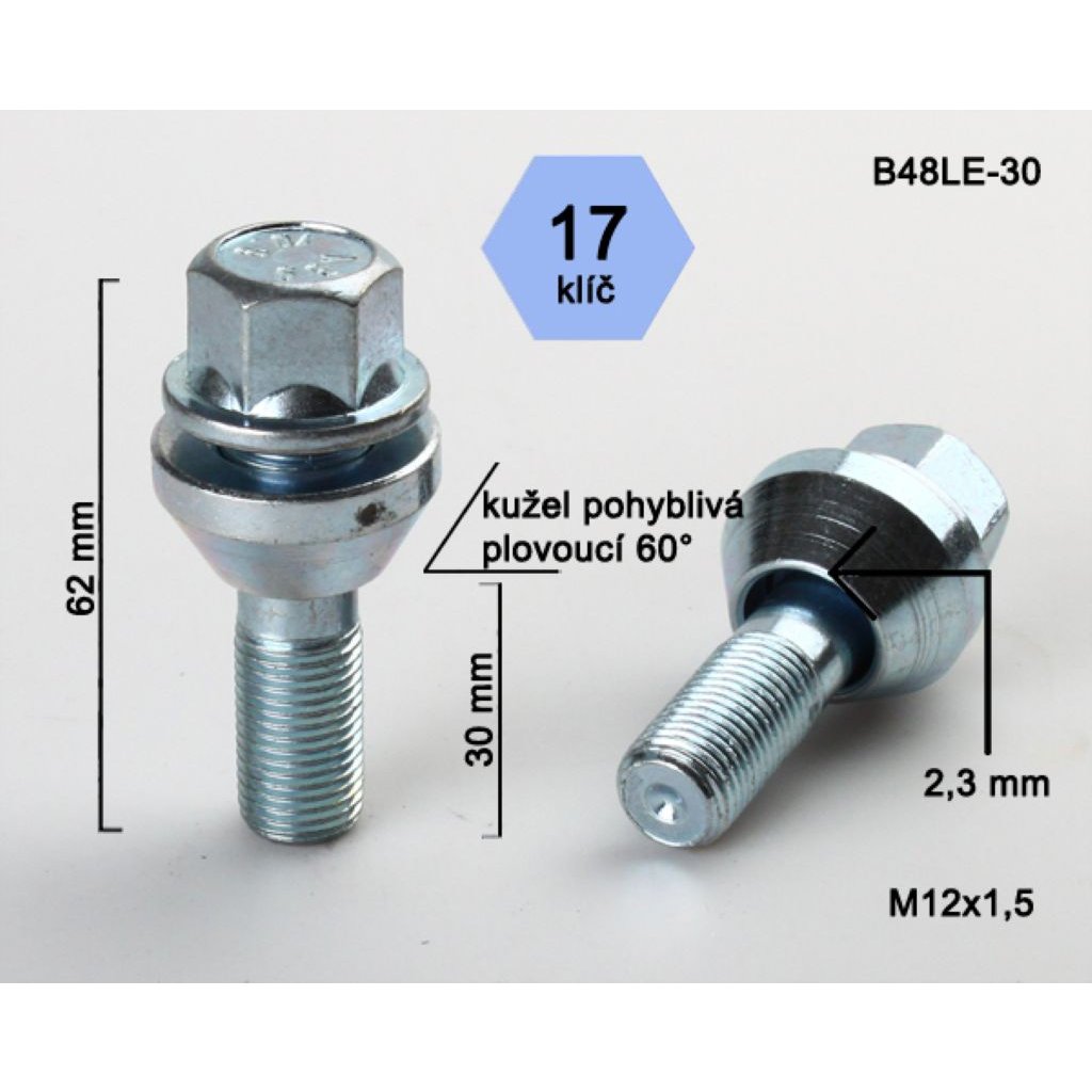 Kolový šroub M12x1,5x30mm plovoucí kužel, klíč 17