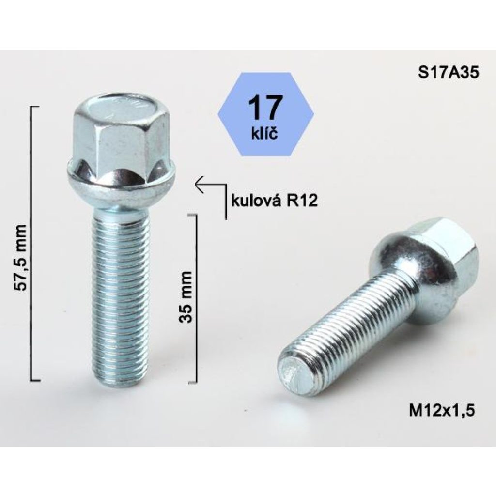 Kolový šroub M12x1,5x35 koule R12, klíč 17