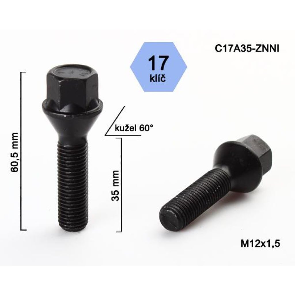 Kolový šroub M12x1,5x35 kužel, černé, klíč 17