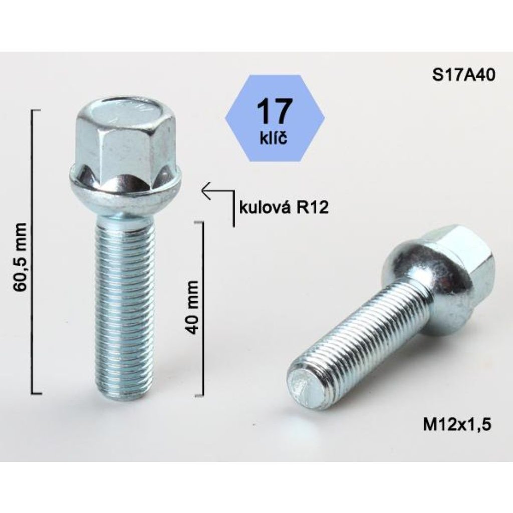 Kolový šroub M12x1,5x40 koule R12, klíč 17, S17A40R12