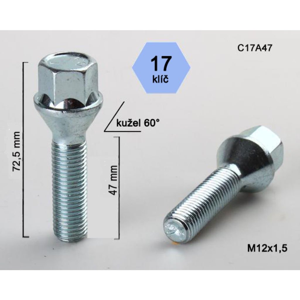 Kolový šroub M12x1,5x47 kužel, klíč 17