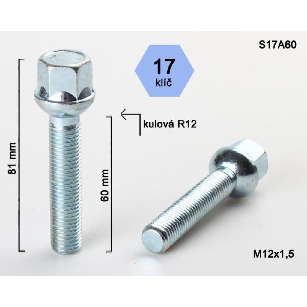 Kolový šroub M12x1,5x60 koule R12, klíč 17