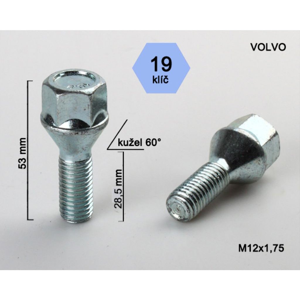 Kolový šroub M12x1,75x28,5 mm, kužel, klíč 19