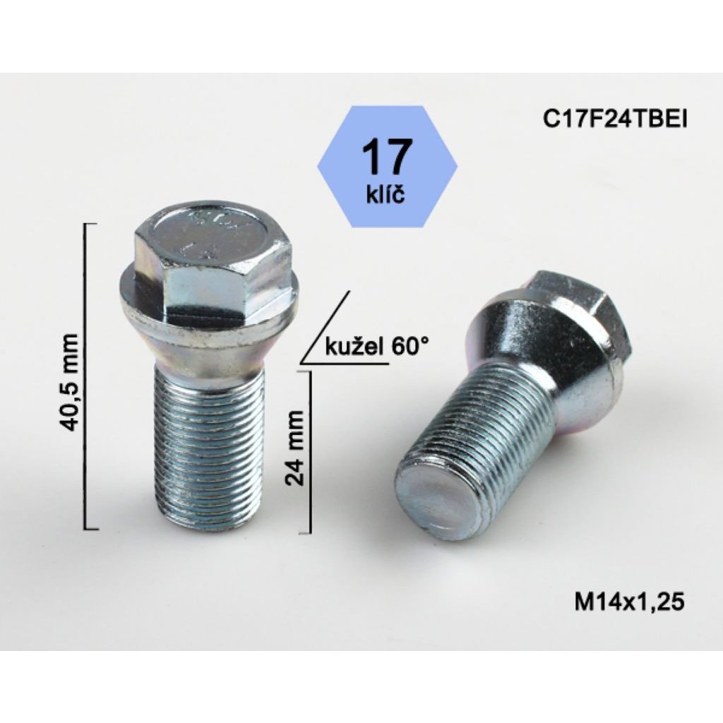 Kolový šroub M14x1,25x24 kužel s krátkou hlavou, klíč 17