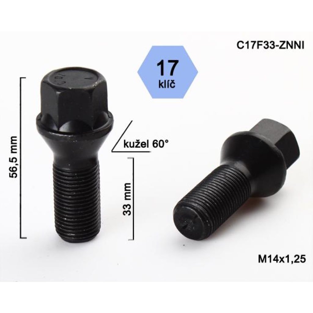 Kolový šroub M14x1,25x33 mm, černý, kužel, klíč 17