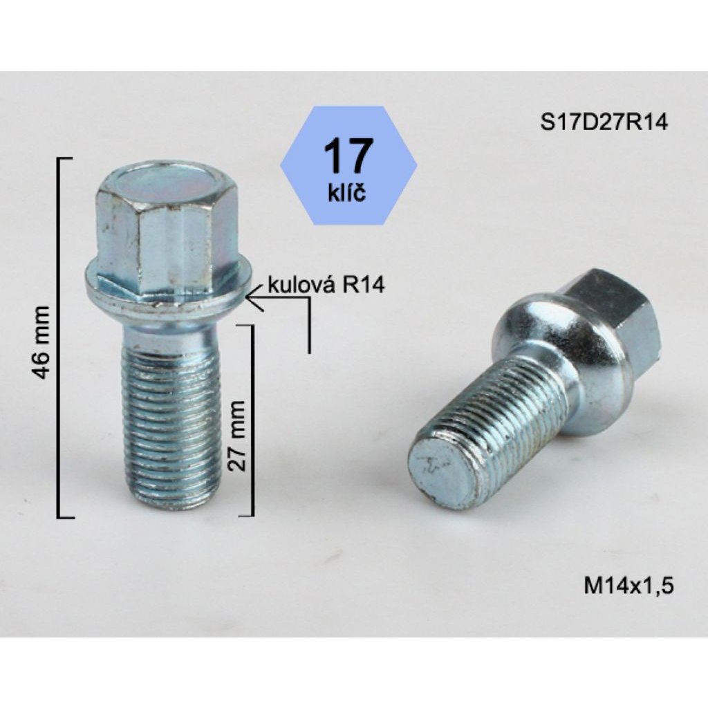 Kolový šroub M14x1,5x27 koule R14, klíč 17