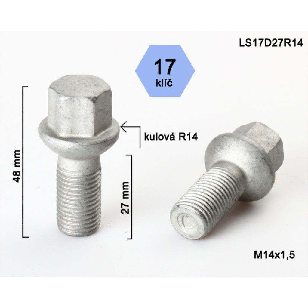 Kolový šroub M14x1,5x27 koule R14, klíč 17