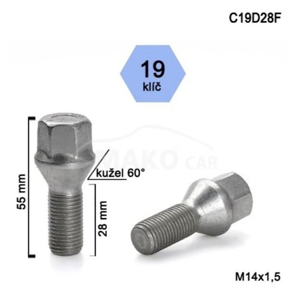 Kolový šroub M14x1,5x28mm kužel, klíč 19