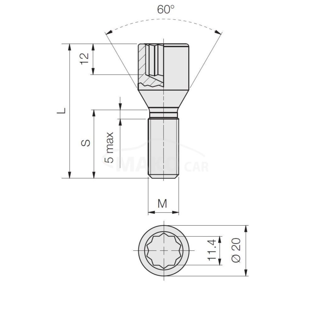 Kolový šroub v černém provedení s vnějším průměrem hlavy 20mm pro aftermarketová kola s úzkými otvory pro šrouby. K těmto šroubům je nutné doobjednat speciální klíč - adapter (CSTL) který dodáváme se šestihranem pro klíč 17mm, 19mm a 21mm