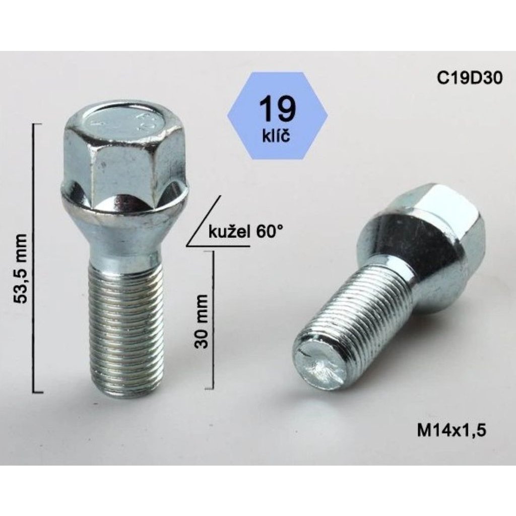 Kolový šroub M14x1,5x30 kužel, klíč 19