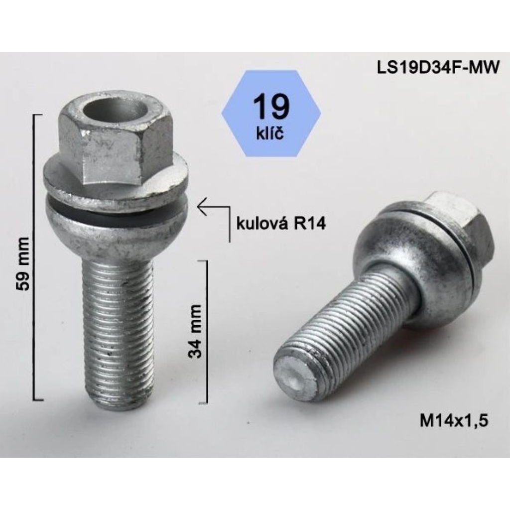 Kolový šroub M14x1,5x34 koule R14 pohyblivá, klíč 19