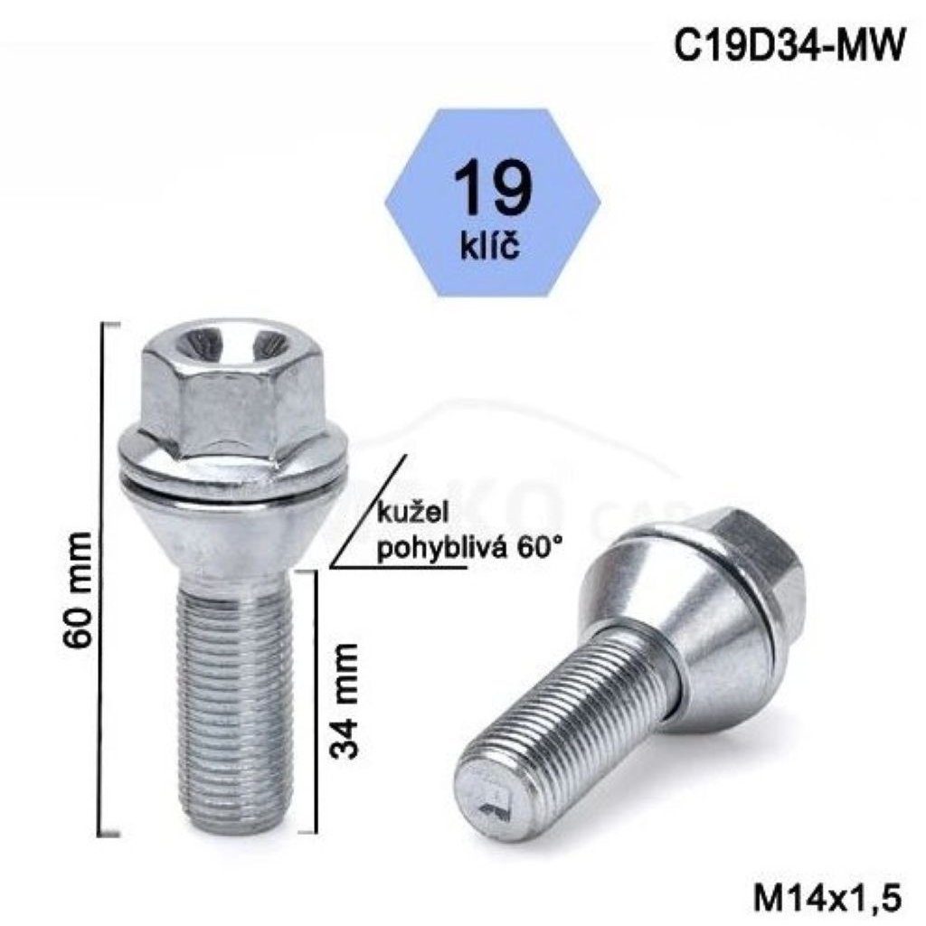 Kolový šroub M14x1,5x34 kužel, pohyblivá, klíč 19