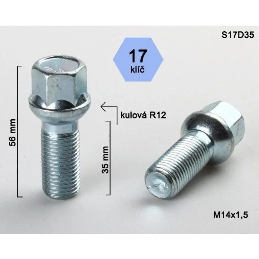 Kolový šroub M14x1,5x35 koule R12, klíč 17