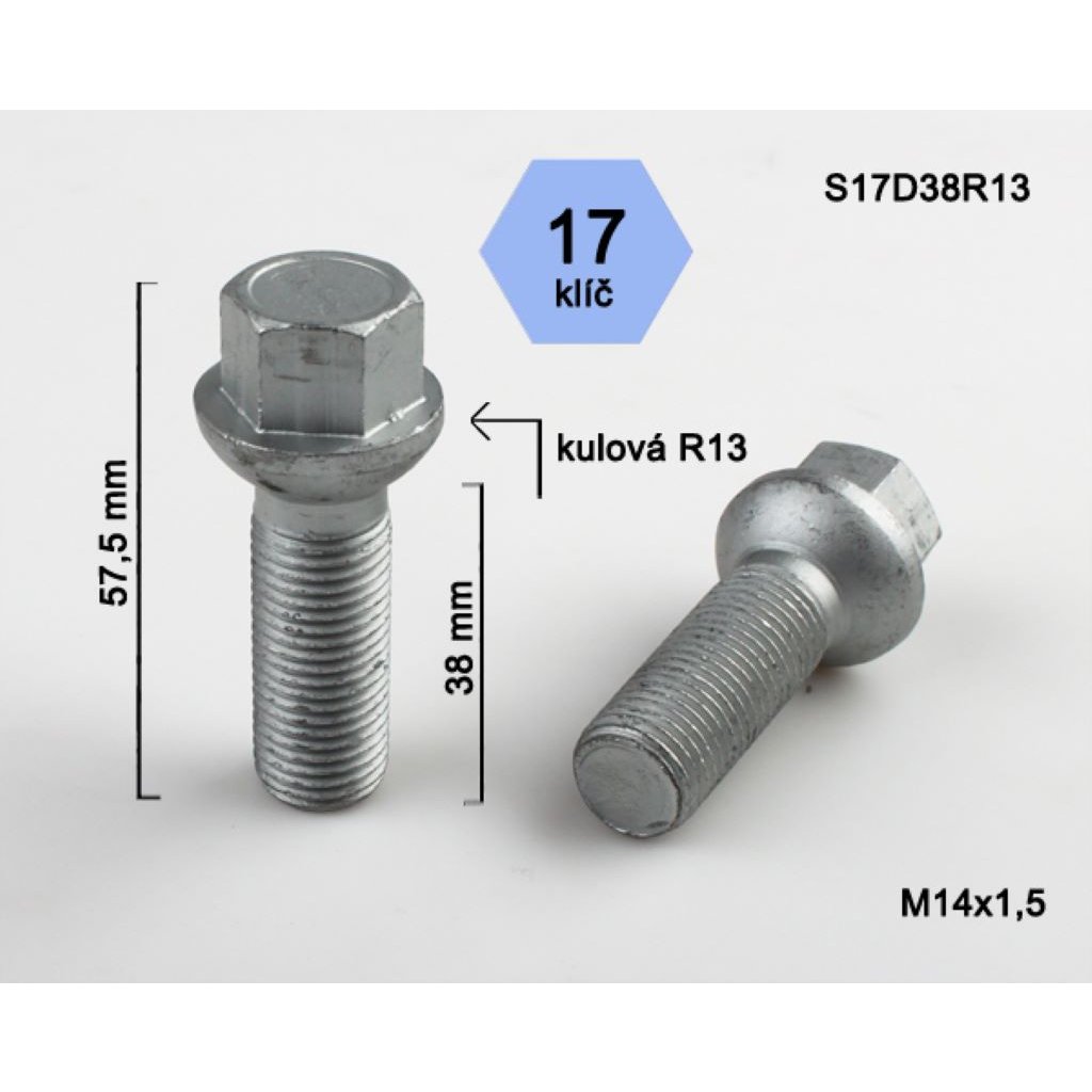 Kolový šroub M14x1,5x38 koule R13, klíč 17