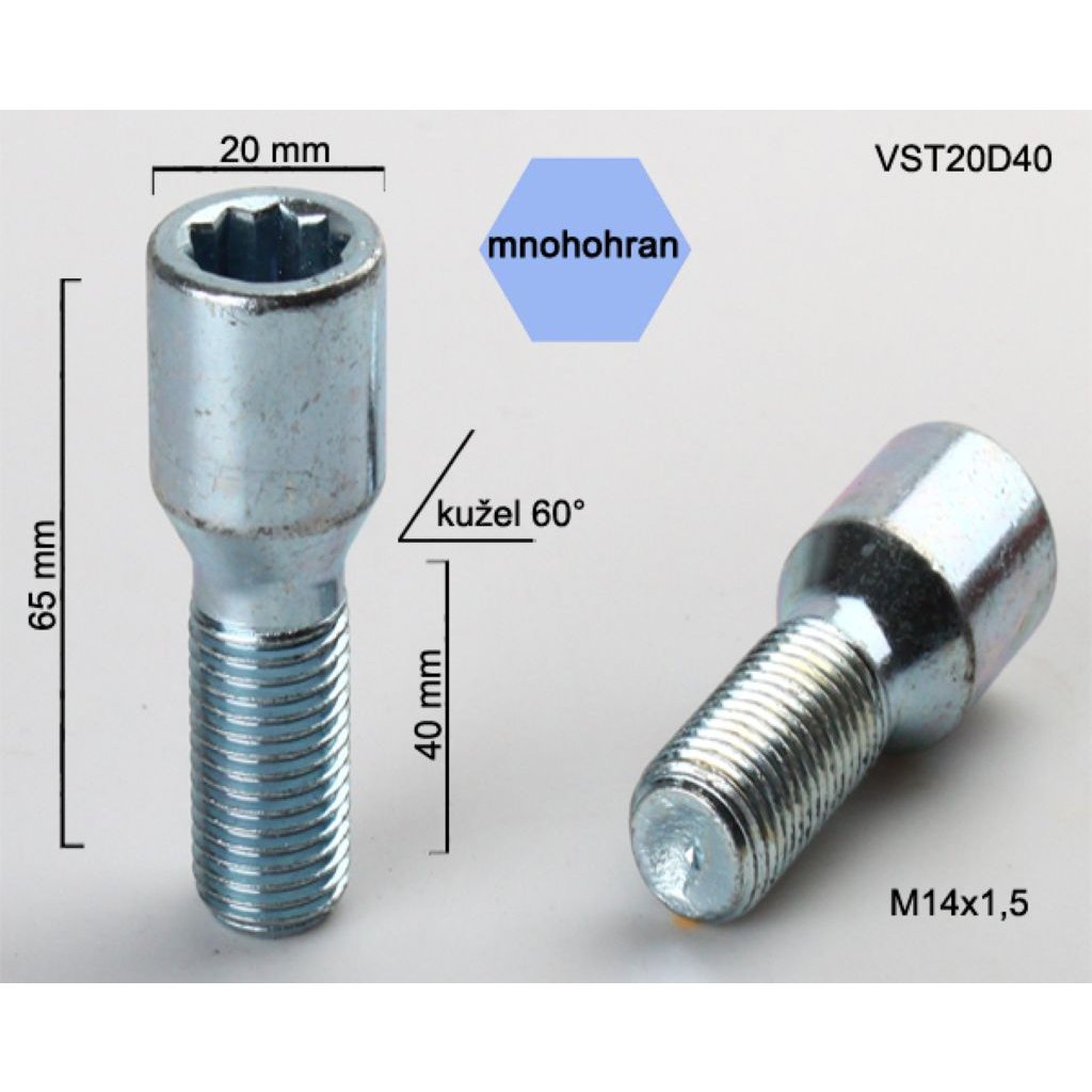 Kolový šroub M14x1,5x40mm kužel s vnitřním mnohohranem, průměr hlavy 20mm