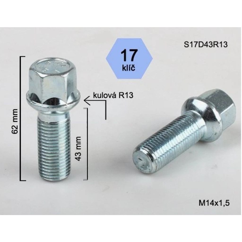 Kolový šroub M14x1,5x43 koule R13, klíč 17, S17D43R13