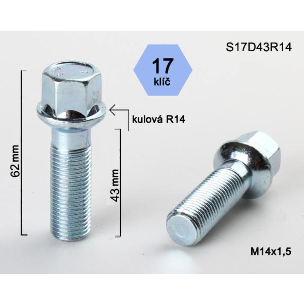 Kolový šroub M14x1,5x43 koule R14, klíč 17