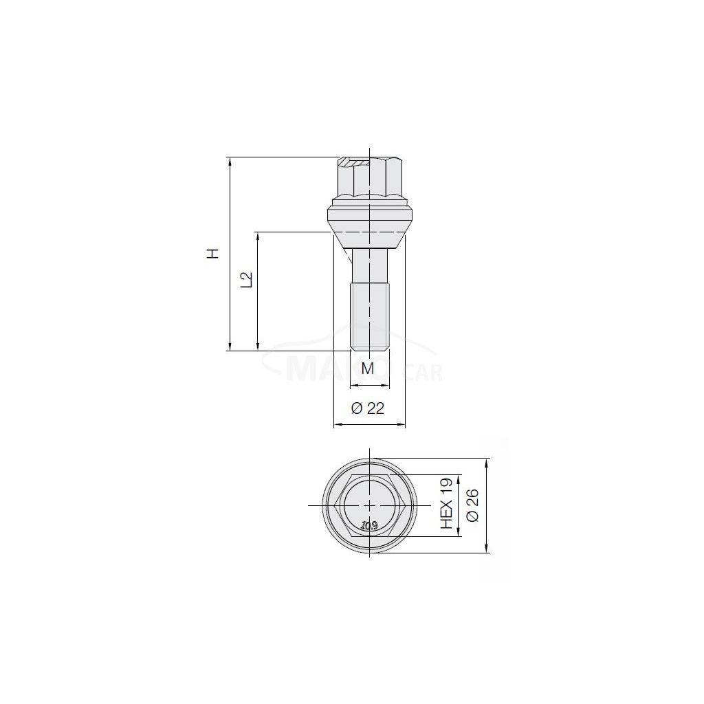 Pevnostní šroub určený k uchycení plechových nebo ALU disků k automobilu.