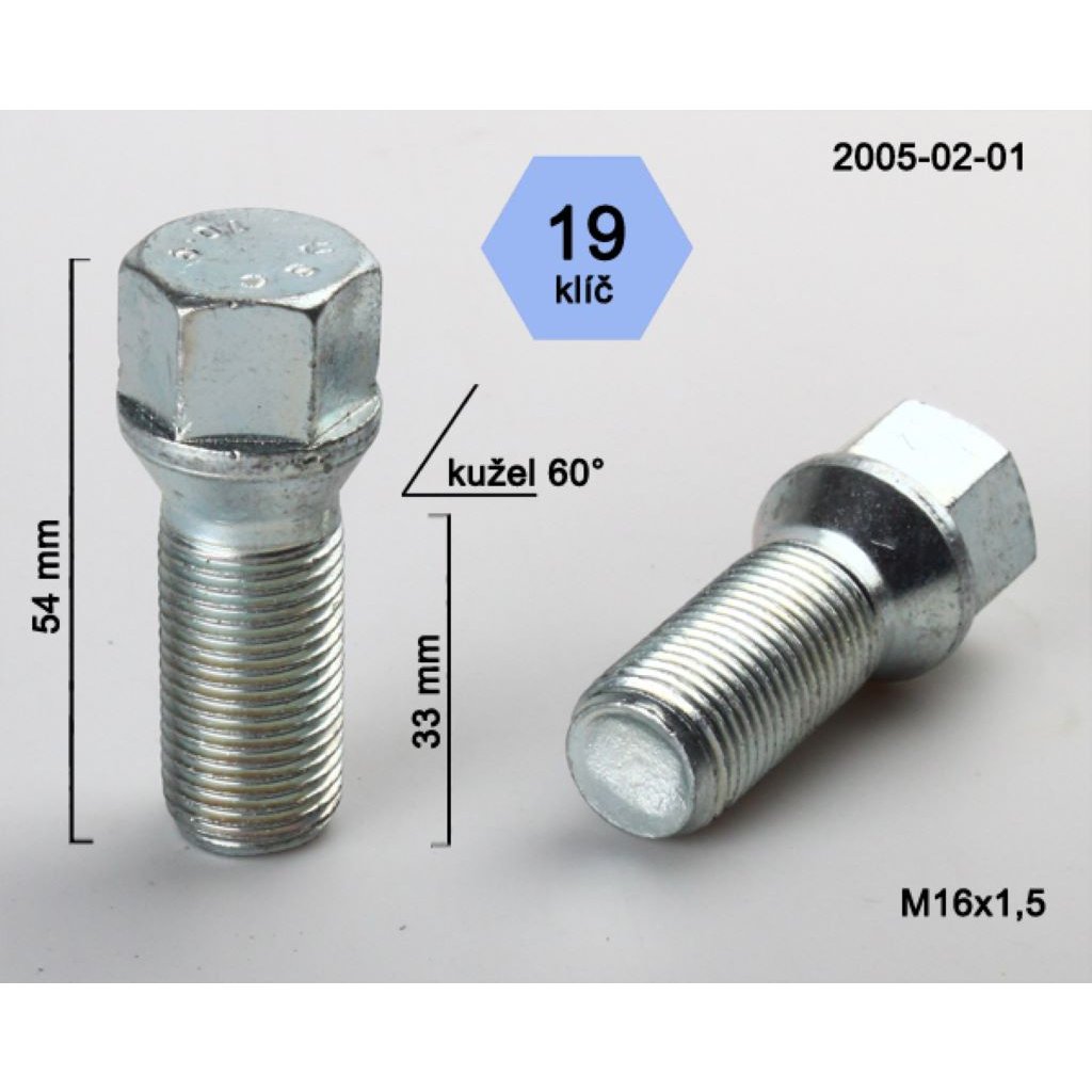 Kolový šroub M16x1,5x33mm kužel, klíč 19