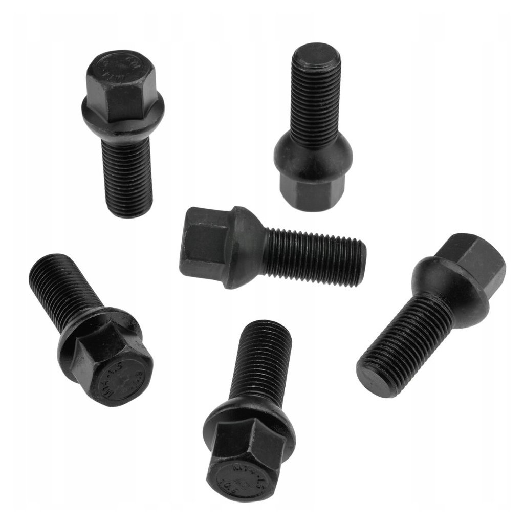 Kolový šroub na originální kola pro vůz Škoda Superb 3 r.v. 2020-2024, M14x1,5x28, dosedací plocha koule R13, klíč 17, černý