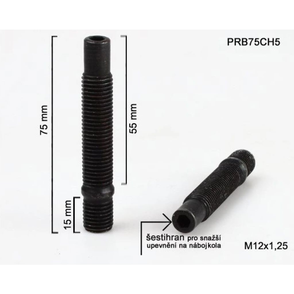 Kolový šteft (svorník) M12x1,25x55+15mm, Celková délka 75mm.