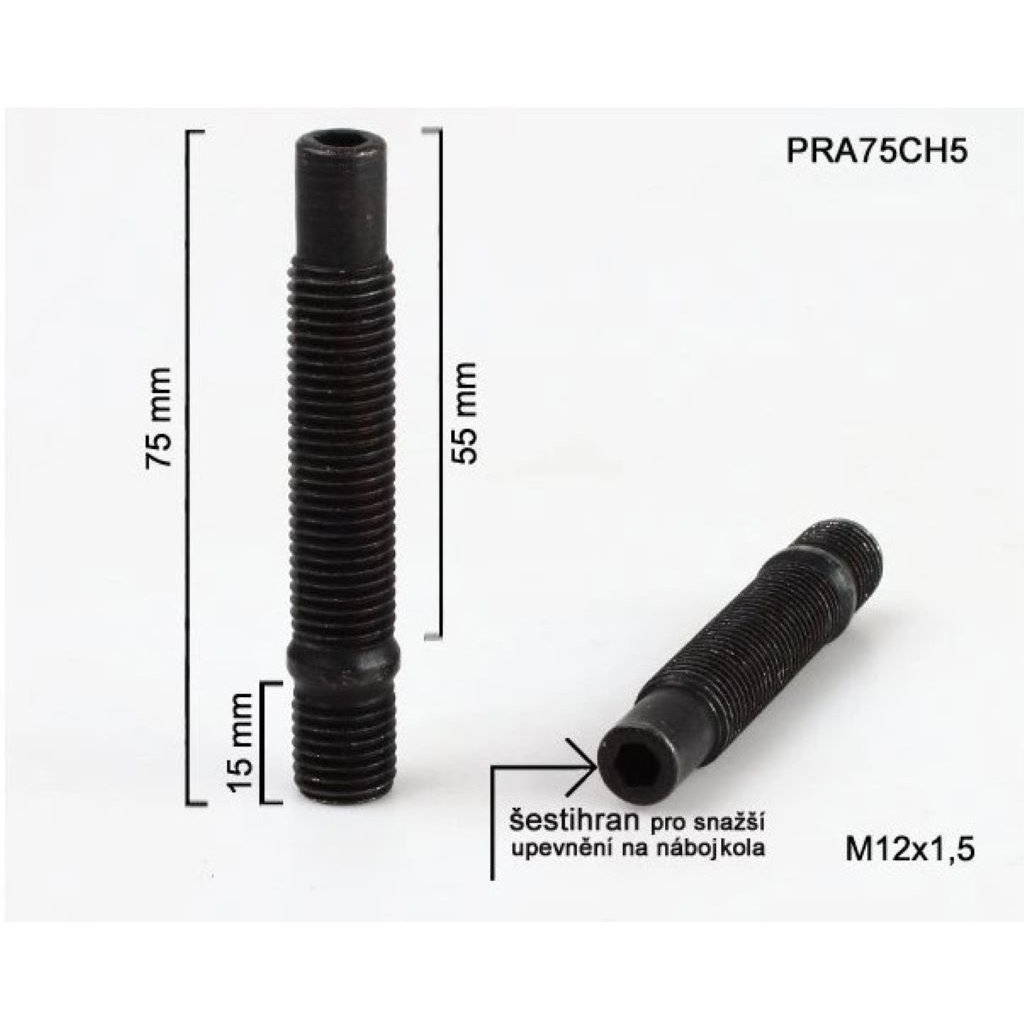 Kolový šteft (svorník) M12x1,5x55+15mm, Celková délka 75mm.