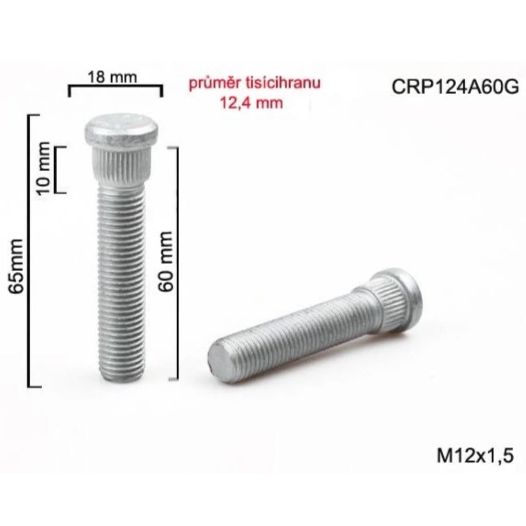 Kolový šteft (svorník) M12x1,5x60mm (celková délka 65mm), průměr tisícihranu 12,4 mm.