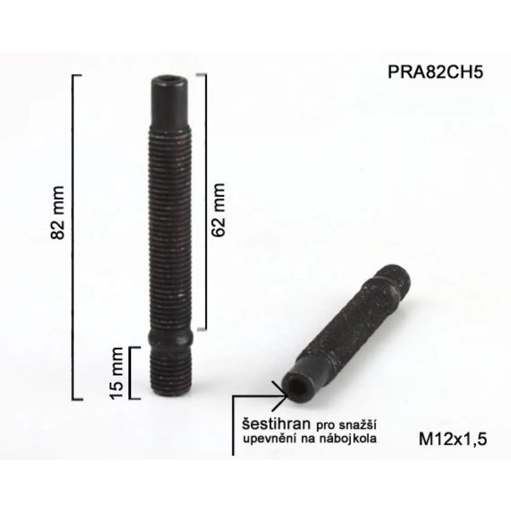 Kolový šteft (svorník) M12x1,5x62+15mm, Celková délka 82mm.