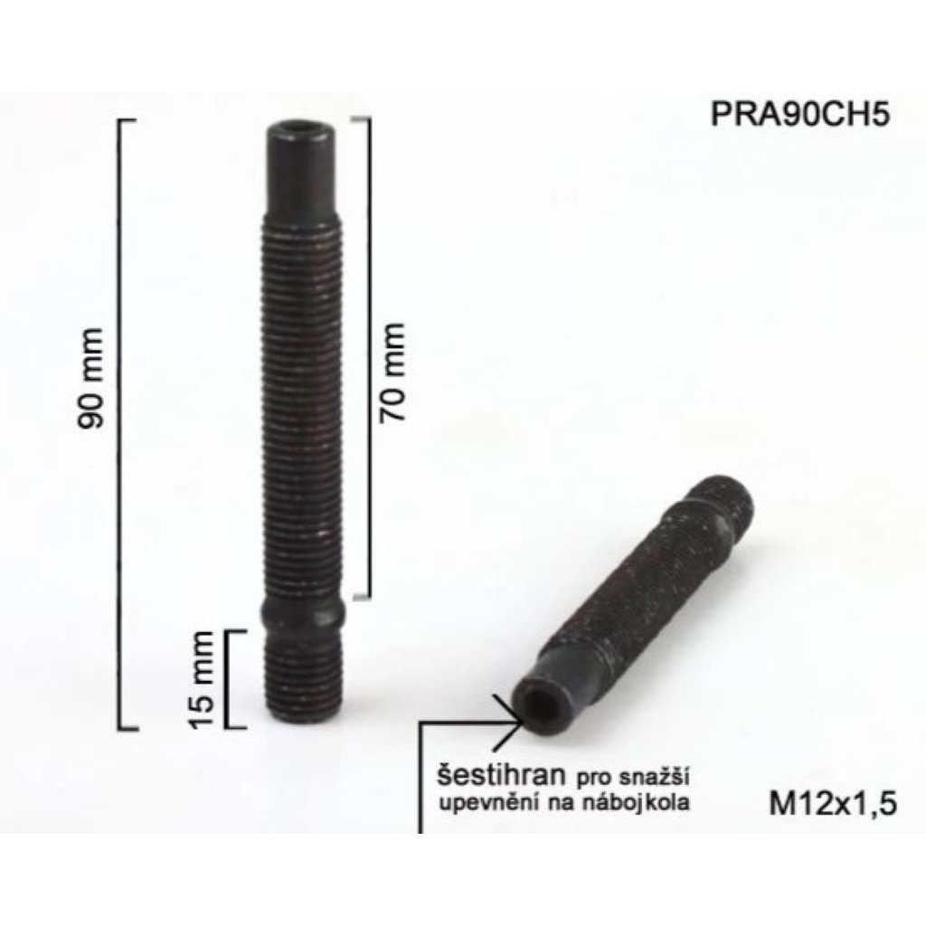 Kolový šteft (svorník) M12x1,5x70+15mm, Celková délka 90mm.