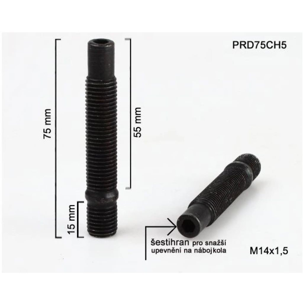 Kolový šteft (svorník) M14x1,5x55+15mm, Celková délka 75mm.