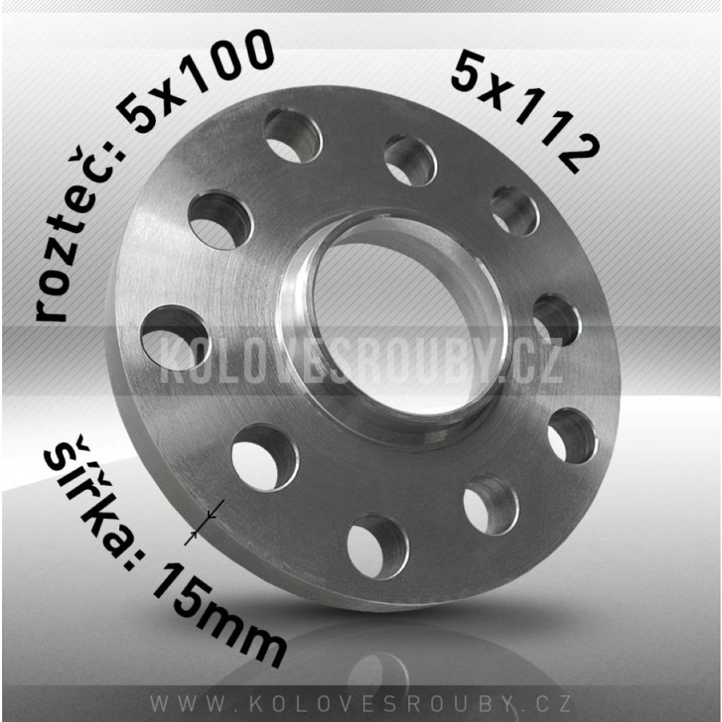 Rozšiřovací podložka, šíře 15mm, rozteč 5x112 - průchozí, 1ks