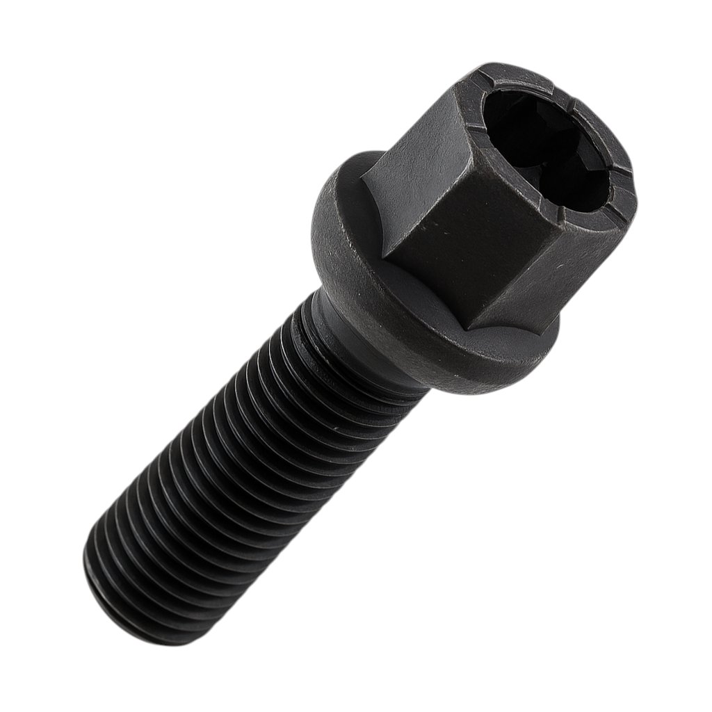 Kolový šroub na originální kola pro vůz Škoda Fabia 2 r.v. 2008-2014, M14x1,5x27, dosedací plocha koule R13, klíč 17, černý